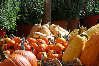 Does that mean I can go gourd shopping yet? Since my roommate and I decided to buy funky gourds last year, I now can't wait to pick out this year's selection. But, can't get them too early - they must last until our annual Pre-Thanksgiving Party we host every year for our friends. Maybe just one baby gourd to tie me over?